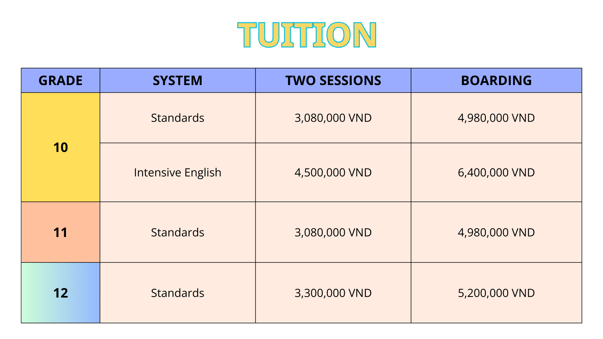 Nguyen Binh Khiem Secondary and High School always aims to provide high quality educational programs with reasonable tuition fees.